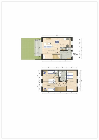 Wohnnutzfläche je Haus: ca. 94,23 m² bis 105,89 m²