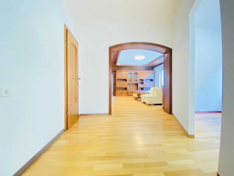 Die Wohnung gliedert sich in: Vorraum, moderne neue Komplettküche, Esszimmer, Wohnzimmer mit großem Kachelofen, 3 weitere Zimmer (davon 1 Durchgangszimmer) , großes Tageslicht-Bad mit Wanne , Walk-in-Dusche und breitem Waschbecken, separates WC . Eine großzügige Terrasse mit Blick zu den Donauauen steht zur alleinigen Benützung bereit.