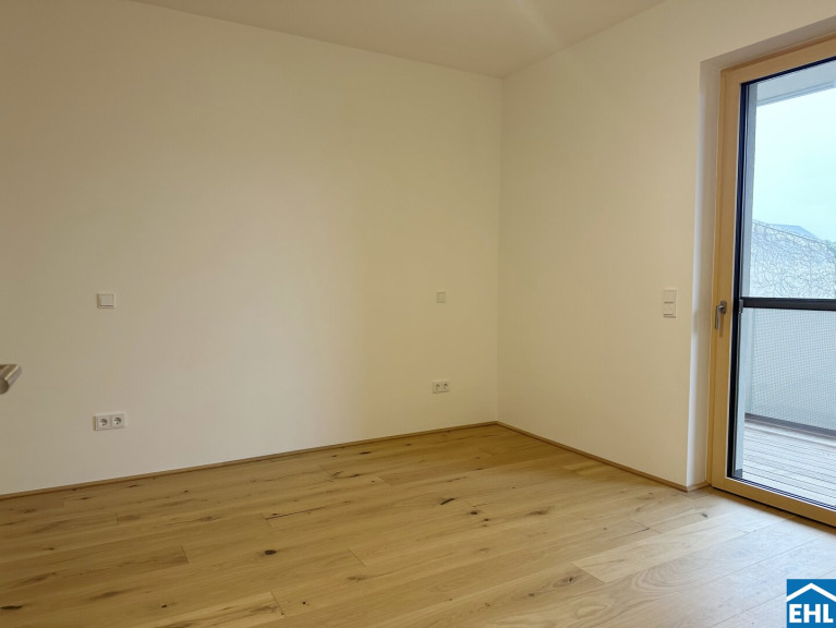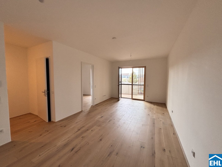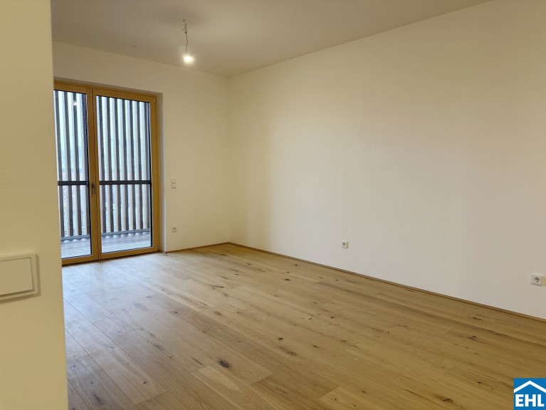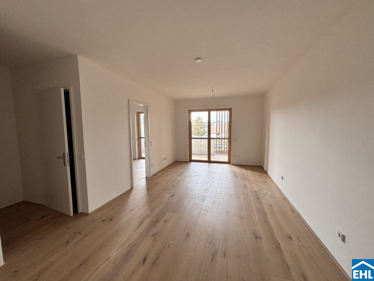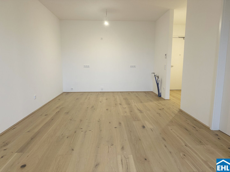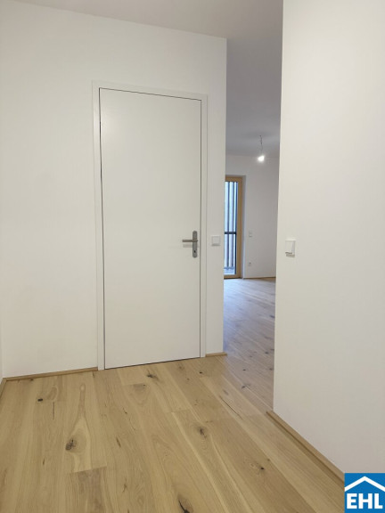 Diese gut geschnittene Neubauwohnung überzeugt durch ihre klare Raumaufteilung, helle Wohnräume und eine attraktive Lage. Vom Vorraum aus gelangen Sie direkt in den großzügigen Wohn- und Essbereich.