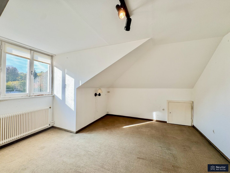 Im nachträglich ausgebauten Dachgeschoss befinden sich drei vollwertige Schlafzimmer, ein Badezimmer mit Dusche sowie ein zusätzlicher, noch nicht ausgebauter Raum. Das Blechdach der Villa befindet sich in gutem Zustand; einzelne Fenster im Dachgeschoss und auf der Wetterseite bedürfen einer Sanierung.