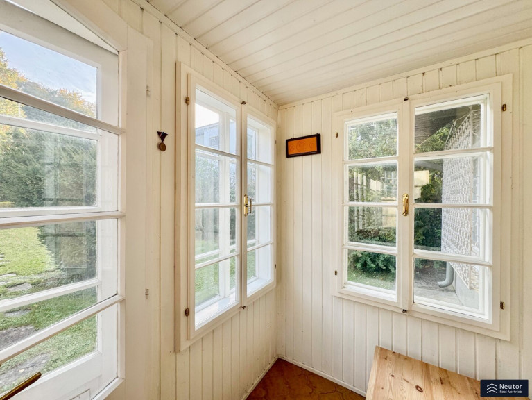 Das Doppelgrundstück präsentiert sich elegant und dezent von der Straße aus, während sich dahinter ein Refugium der Ruhe und Privatsphäre eröffnet. Zwei Parkplätze vor dem Haus sowie ein vollständig verglaster Eingangsbereich führen Sie in die Villa. Zeitlos, mit Bedacht gepflegt, erwartet Sie hier ein wahres Schmuckstück aus dem Jahr 1899.