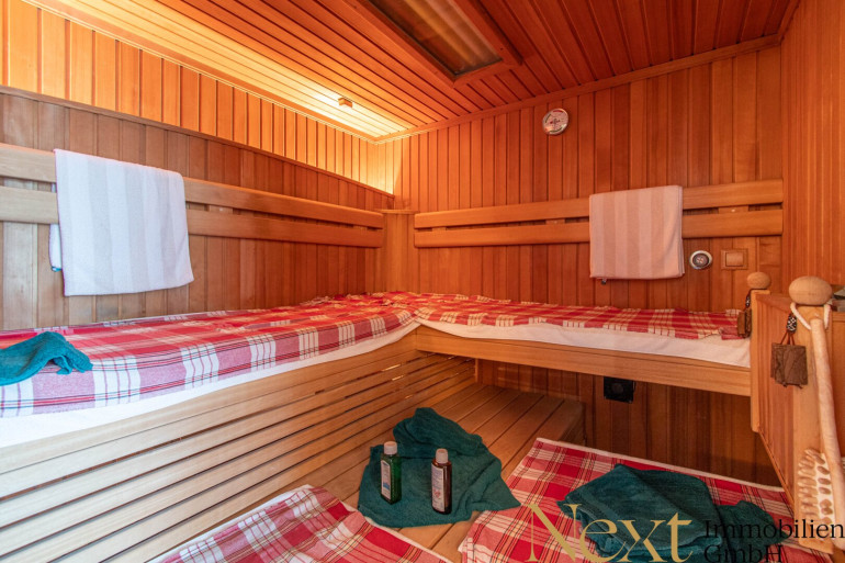 - Wellnessbereich mit Sauna, Dusche und Wasserbett