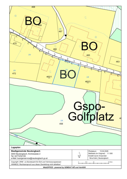 Das ebene Grundstück liegt südlich ausgerichtet, in einer ruhigen Wohnsiedlung, nur ca. 150 m vom Abschlag des 9-Loch Golfplatzes Neulengbach entfernt mit traumhaftem Weitblick auf die Voralpen - bis zum Schneeberg!