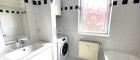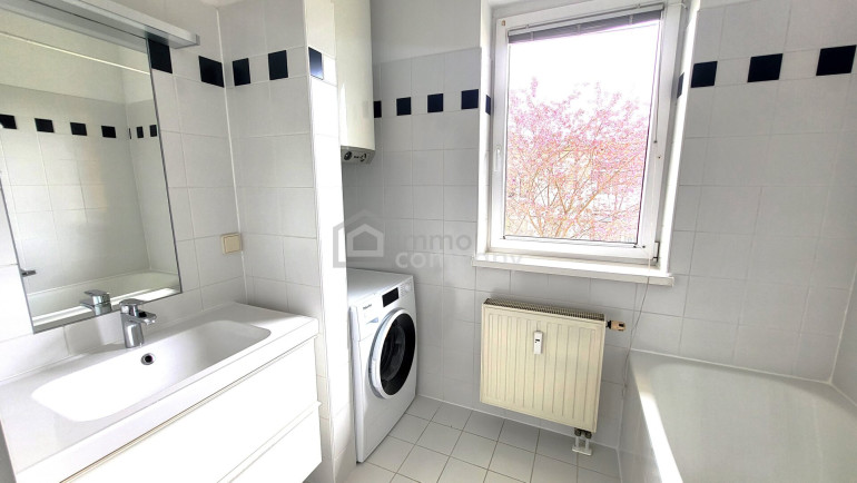 - Badezimmer mit Badewanne, Fenster und Waschmaschinenanschluss