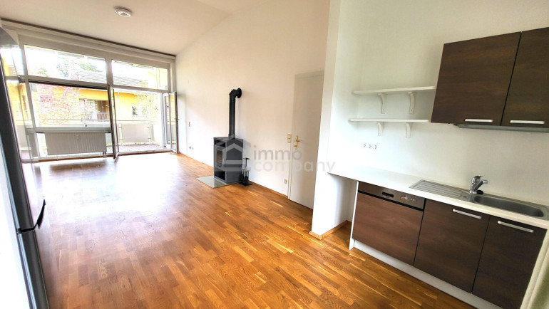 - Heller Wohn- und Essbereich mit integrierter Küche und Balkonzugang