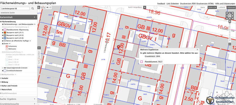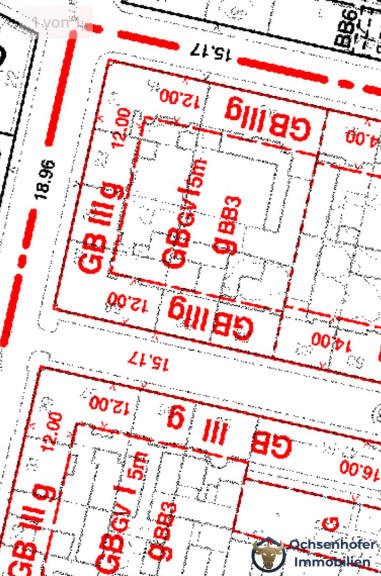 - GB GV I 5 m, BB3 (60% Bebaubarkeit) beim innenhofseitigen Nebengebäude.