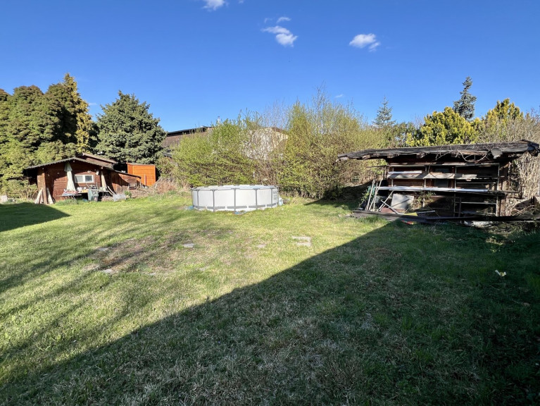 Bestand: Gemütliches Holzhaus mit Terrasse, Gartenhäusern und privatem Pool (Bereit für den Abriss)