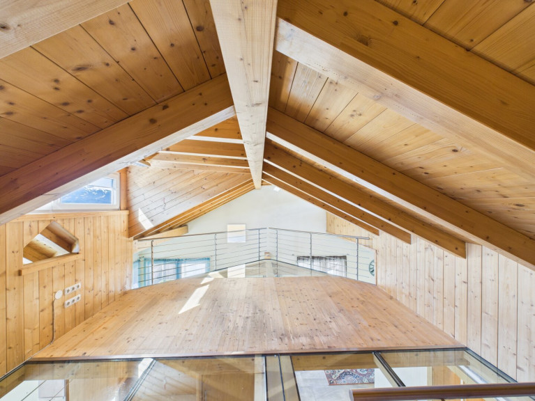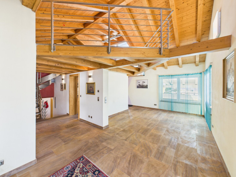 Die Liegenschaft umfasst zwei getrennte Wohneinheiten und erstreckt sich über mehrere Halbgeschosse, wodurch eine interessante und offene Raumstruktur entsteht. Die obere Maisonette-Wohnung (ca. 115 m²) überzeugt mit einem lichtdurchfluteten Wohnkonzept, Wintergarten, Galerie-Ebene sowie Balkon. Die darunterliegende Einheit (ca. 90 m²) bietet eine funktionale Raumaufteilung mit direktem Zugang zu Balkon, Terrasse und Garten.