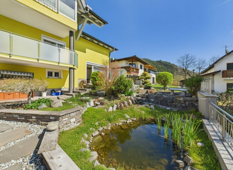 Ein besonderes Highlight ist der großzügige, südlich ausgerichtete Garten mit liebevoll angelegtem Fischteich sowie einer gemütlichen Pergola – ein idealer Rückzugsort für entspannte Stunden im Freien.