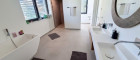 Parkett, Kunststoffboden, Fußbodenheizung, Wohnküche / offene Küche, Bad mit Fenster, Badewanne, Dusche, Garage, Swimmingpool
