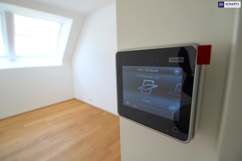 Die Ausstattung lässt keine Wünsche offen: Fußbodenheizung, Klimaanlage in allen Räumen sowie außenliegende elektrische Jalousien bei den Velux-Dachflächenfenstern sorgen für höchsten Wohnkomfort zu jeder Jahreszeit.
