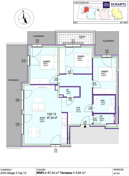 Wohnfläche: ca. 87,34 m² + Terrasse: ca. 3,64 m² + Kellerabteil