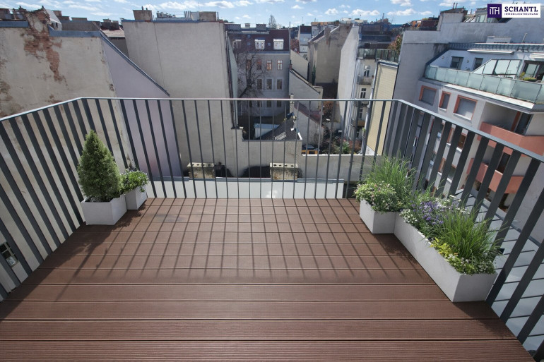 Großzügige Außenflächen: 18 m² Balkon + 43 m² Dachterrasse