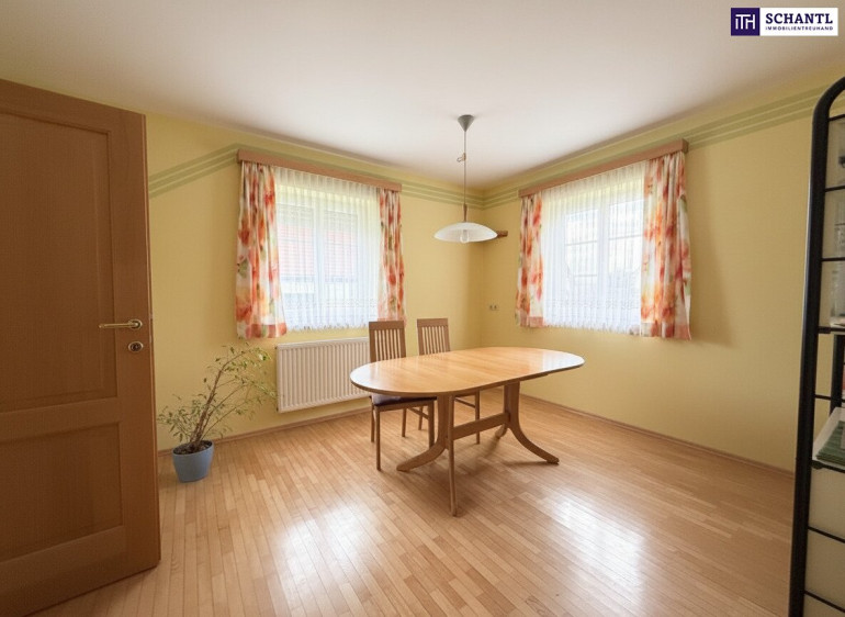 Die Lage rundet dieses Angebot perfekt ab. In einer ruhigen, grünen Umgebung gelegen, profitieren Sie dennoch von einer guten Infrastruktur: Busverbindungen sowie Arzt, Schule und Kindergarten befinden sich in unmittelbarer Nähe und machen das Haus besonders attraktiv für Familien.