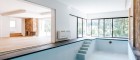 - an diesen schließt der Wellnessbereich mit Schwimmbad, Sauna, Kaltwasserbecken, Umkleide, Dusche und Toilette an