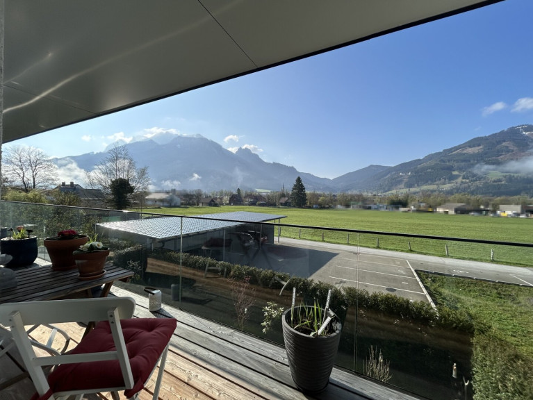 - helle, moderne Wohnung in Hall/Admont mit großen Fensterflächen und herrlichem Blick auf die umliegenden Berge.