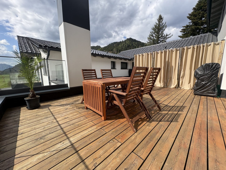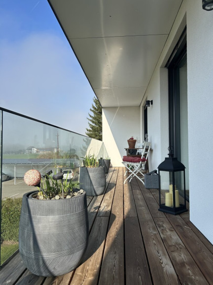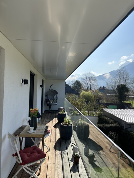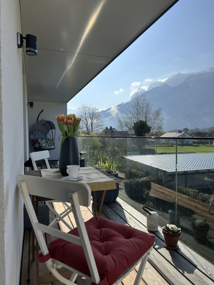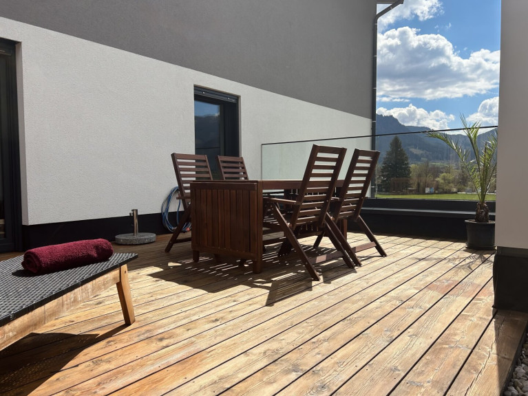 - Großzügige, sonnige Loggia und Terrasse mit Bergblick.