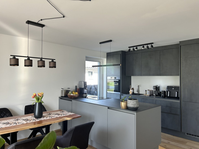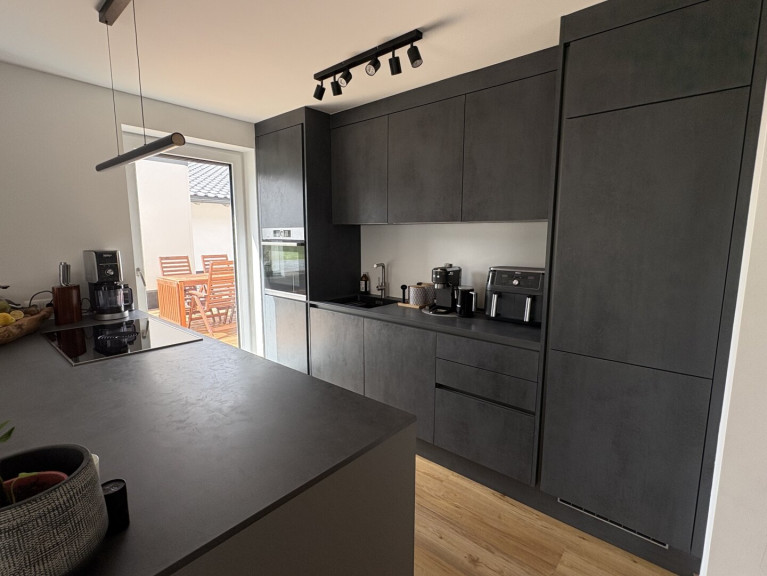 - Hochwertige Haka Einbauküche mit Bora-Kochfeld; Bosch-Geräte, darunter Dampfgarer mit WLAN.