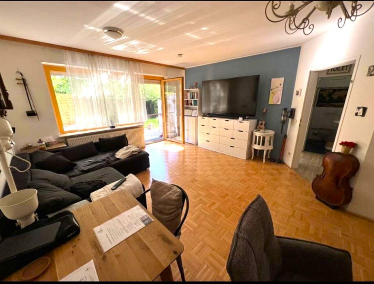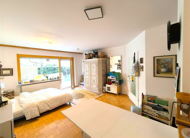 - heller Wohnraum mit halb-offener Küche, Abstellraum und Zugang auf die Terrasse und in den Garten