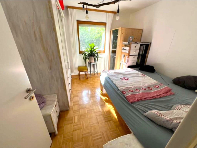 - gemütliches Schlafzimmer, ebenfalls mit Blick in den Garten