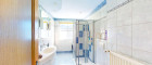 Das Badezimmer im Erdgeschoss mit ca. 7,8 m² präsentiert sich freundlich, gepflegt und funktional. Ausgestattet mit Dusche, WC, Waschbecken sowie Waschmaschine und Trockner, erfüllt es alle Anforderungen des modernen Wohnalltags. Ein Fenster sorgt für natürliche Belichtung und angenehme Belüftung. Die blau-weiße Gestaltung wirkt frisch, zeitlos und leicht spa-inspiriert. Ergänzt wird das Raumangebot durch praktische Nebenflächen wie einen Speis- bzw. Abstellraum mit Fenster, der mit grünen Feinsteinzeug-Fliesen ausgeführt ist und im Alltag zusätzlichen Stauraum schafft.