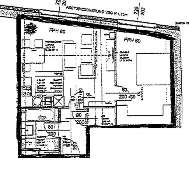 Wohnraum mit offener Einbauküche, Schlafzimmer, Vorraum,