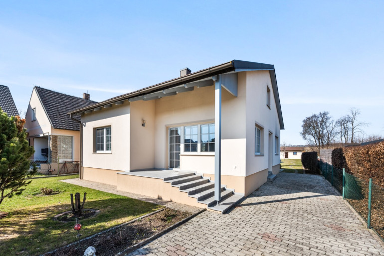 Dieser sehr gepflegte Bungalow liegt im Zentrum der kleinen Gemeinde Hagenberg im Weinviertel Kreis Mistelbach. Umgeben von einer harmonischen Hügellandschaft angrenzend an die Laaer Ebene bietet das Dorf pure Idylle. Die umliegenden Felder und Wälder laden zu Spaziergängen ein. Der nächste Arzt mit hauseigener Apotheke befindet sich im ca. 1km entfernten Nachbarort. Für diverse Nahversorger fahren Sie entweder nach Laa a.d. Thaya oder Mistelbach, beides ca. 15 km entfernt und mit dem Auto erreichbar. Für Ihre Kinder befindet sich ein Kindergarten im Nachbarort und eine Volksschule in Fußdistanz zu Ihrem zukünftigen Heim. Die A5 liegt etwa 25 Autominuten entfernt und bietet Ihnen Anbindung Richtung Wien.