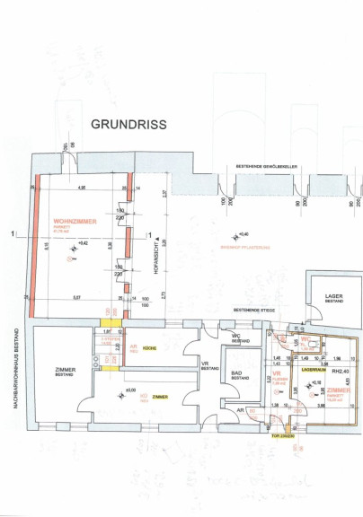 Vorraum, Einbauküche, Schlafzimmer (Tramdecke), Kinderzimmer, Bad, 2 WC, Abstellraum,