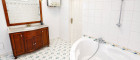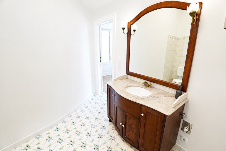 - Hochwertige Materialien – edler Fischgrätparkettboden und großformatige Fliesen