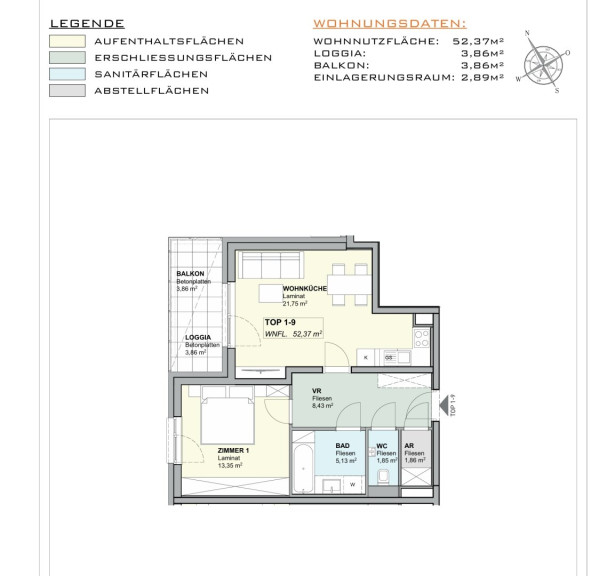 zur Vermietung gelangt eine moderne geförderte 2-Wohnung im Bezirk Hollabrunn. Es handelt sich um einen Erstbezug.