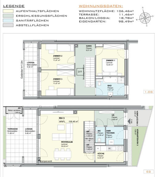 Für das Reihenhaus in Großstelzendorf beträgt die Nutzfläche ca. 106 m². Zusätzlich verfügt das Objekt über eine Terrasse bzw. einen Garten mit insgesamt ca. 100 m² sowie eine Loggia im Obergeschoss mit ca. 9 m².Die Wohnräume sind mit Laminatboden, die Nassräume mit Fliesen ausgestattet. 3-fach-verglaste Fenster sorgen für angenehmes Raumklima.