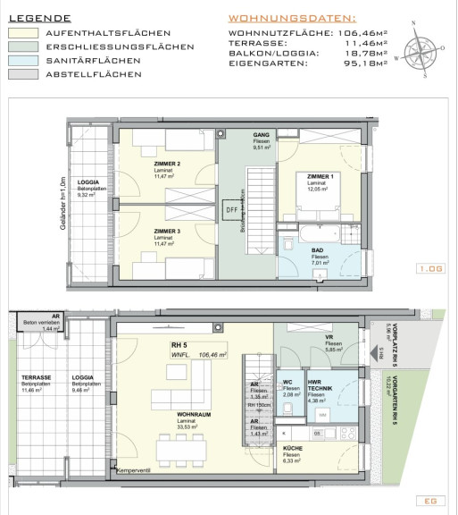 Für das Reihenhaus in Großstelzendorf beträgt die Nutzfläche ca. 106 m². Zusätzlich verfügt das Objekt über eine Terrasse bzw. einen Garten mit insgesamt ca. 95 m² sowie eine Loggia im Obergeschoss mit ca. 9 m².Die Wohnräume sind mit Laminatboden, die Nassräume mit Fliesen ausgestattet. 3-fach-verglaste Fenster sorgen für angenehmes Raumklima.