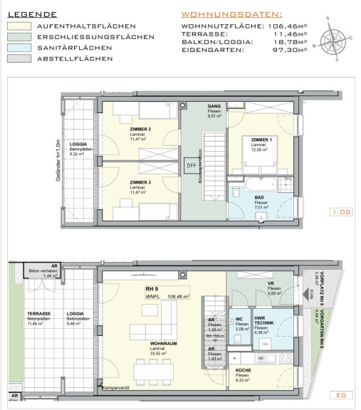 Für das Reihenhaus in Großstelzendorf beträgt die Nutzfläche ca. 106 m². Zusätzlich verfügt das Objekt über eine Terrasse bzw. einen Garten mit insgesamt ca. 97 m² sowie eine Loggia im Obergeschoss mit ca. 9 m².Die Wohnräume sind mit Laminatboden, die Nassräume mit Fliesen ausgestattet. 3-fach-verglaste Fenster sorgen für angenehmes Raumklima.