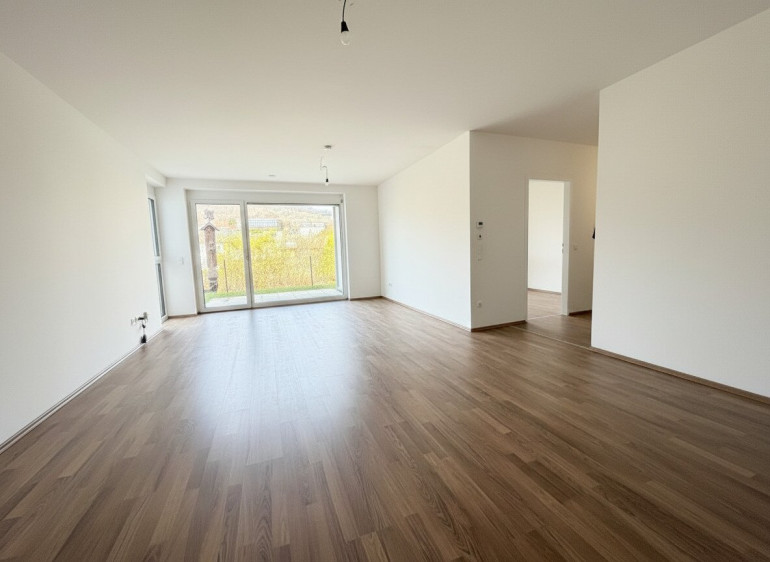 Die Wohnung verfügt über ca. 78 m² Nutzfläche sowie über einen Garten und eine Terrasse. Die Wohnräume sind mit Laminatboden, die Nassräume mit Fliesen ausgestattet. 3-fach-verglaste Fenster sorgen für angenehmes Raumklima.