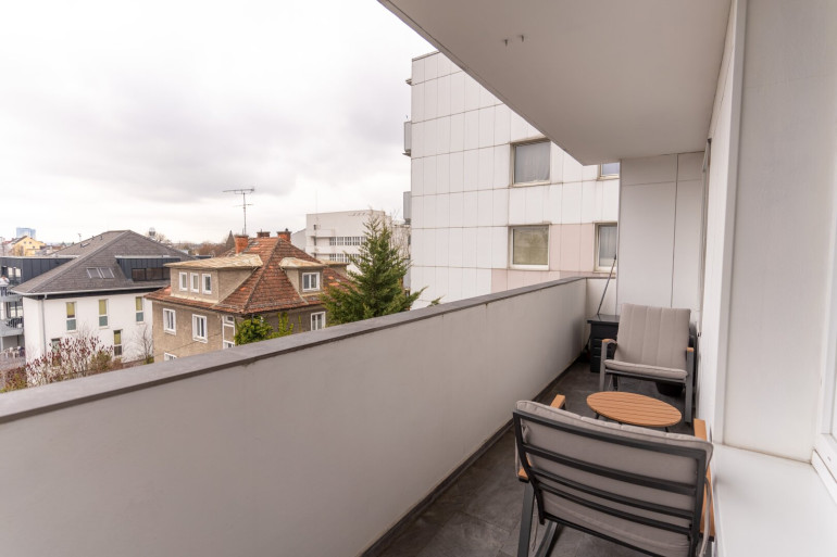Ein besonderes Highlight ist der Südwestbalkon, auf dem Sie nach einem langen Tag entspannen und den traumhaften Stadtblick genießen können. Stellen Sie sich vor, wie Sie bei Sonnenuntergang auf Ihrem Balkon sitzen und die ruhige Umgebung genießen, während die Lichter der Stadt langsam erstrahlen.
