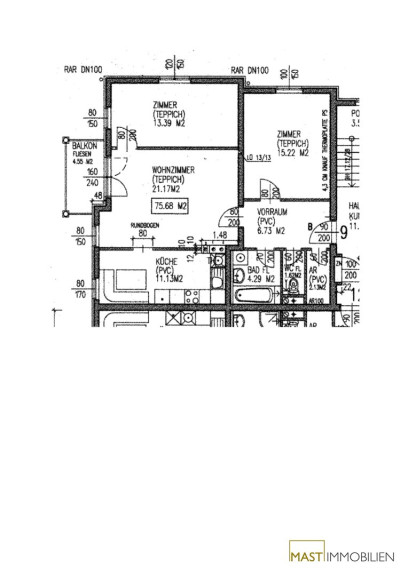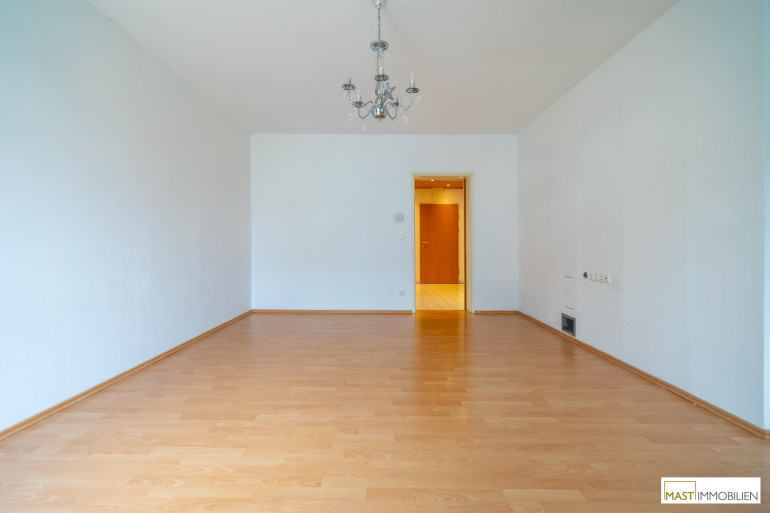 Nach Eintritt in die Wohnung gelangen Sie in ein großzügiges Vorzimmer mit ausreichend Platz für Ihre Garderobe. Das aktuelle Kinderzimmer umfasst eine Fläche von ca. 15 m² und ist direkt vom Vorzimmer aus begehbar. Das separate WC inkl. Waschbecken & Badezimmer ist ebenfalls vom Vorzimmer aus begehbar. Das optimal aufgeteilte Wohnzimmer bietet einen direkten Zugang auf die südlich ausgerichtete Freifläche (Balkon - ca. 4,50 m²). Bei einer teilweisen Sanierung der Wohnung, wurde die alte Küche gegen eine Neue inkl. "DIETER KNOLL Collection" Geräte ersetzt (Wert der Küche liegt bei ca. 20.000,--). Das Elternschlafzimmer mit einer Fläche von ca. 13,40 m² ist vom Wohnzimmer aus begehbar.
