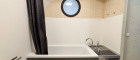 Das stilvolle Designer-Badezimmer mit Badewanne garantiert entspannte Wellnessstunden.