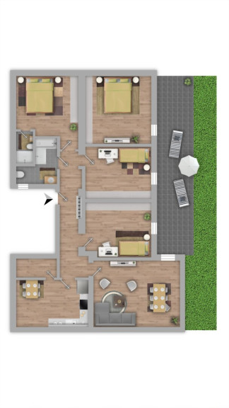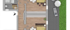 Die Grundrissvisualisierungen sollen einen Eindruck der Raumaufteilung vermitteln. Die dargestellte Möblierung entspricht nicht dem IST-Zustand.