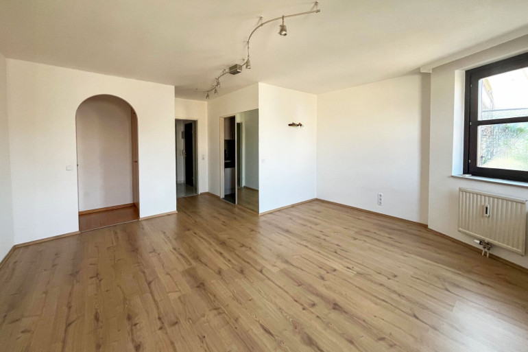 Die gepflegte Wohnung unterteilt sich in einen zentralen Vorraum, Badezimmer mit Wanne, separates WC, Abstellraum/Garderobe, Küche mit Geräten (Kühl-Gefrierkombi, Geschirrspüler, E-Herd mit Ceranfeld und Backrohr) und ein großzügiges Wohn- Schlafzimmer. Im Wohnbereich ist Laminat verlegt, Vorraum Bad und WC sind verfliest.
