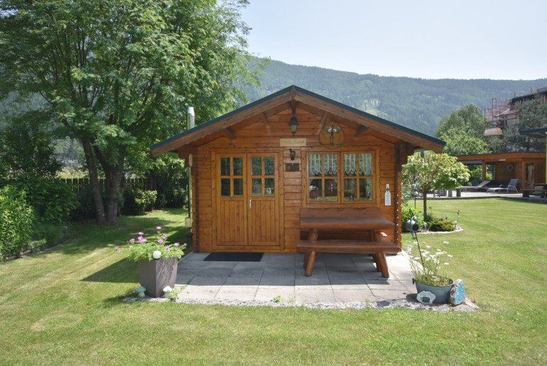 - Saunahaus - überdachter Sitzbereich mit angeschlossener Außensauna und Duschgelegenheit