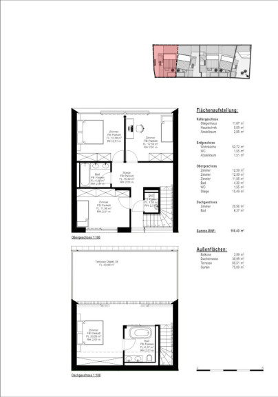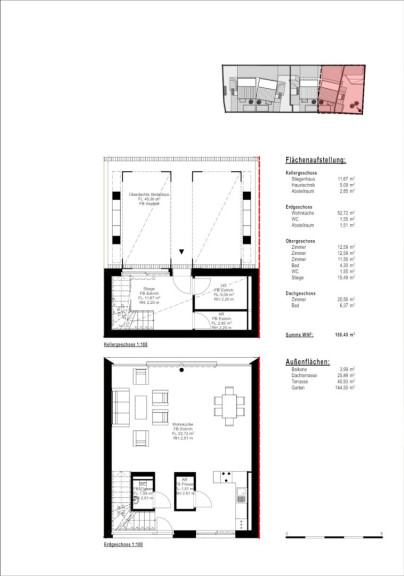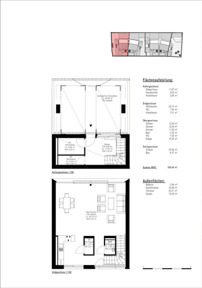 Jede Einheit bietet großzügige, lichtdurchflutete Innenräume. Das Herzstück bildet eine helle Wohnküche im Erdgeschoss. Während sich im ersten Obergeschoss drei geräumige Zimmer sowie ein Badezimmer befinden, ist das Dachgeschoss ganz als privater Rückzugsort konzipiert: Ein exklusives Masterbedroom mit eigenem Bad führt direkt auf eine weitläufige Dachterrasse. Von hier aus genießen Sie einen traumhaften Ausblick auf die umliegenden Weinberge. Private Gärten sowie überdachte Stellplätze im Untergeschoss runden dieses Angebot ab und machen es zum idealen Zuhause für Anspruchsvolle.