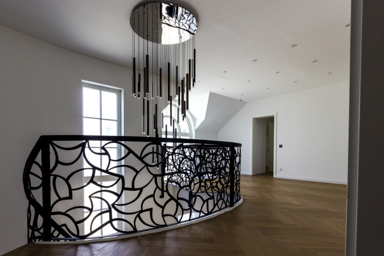 Über zwei lichtdurchflutete Etagen verteilen sich 7 Zimmer, ob Arbeitszimmer oder Schlafräume bleibt Ihre Entscheidung. Es befinden sich jeweils 2 hochwertige Badezimmer auf jeder Etage und die Dachterrasse krönt das Haus – hier genießen Sie bei einem Glas Wein den Blick über die abendliche Landschaft.