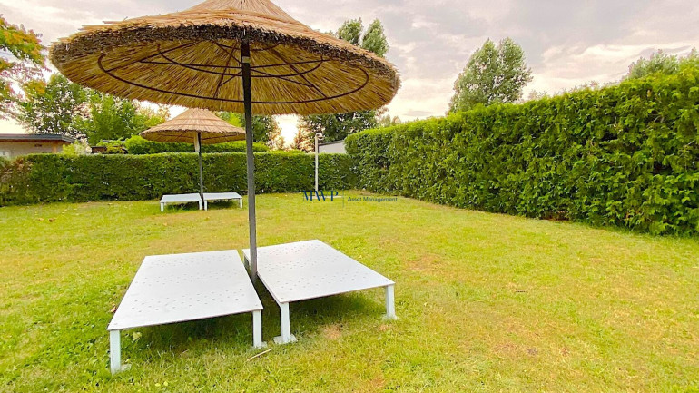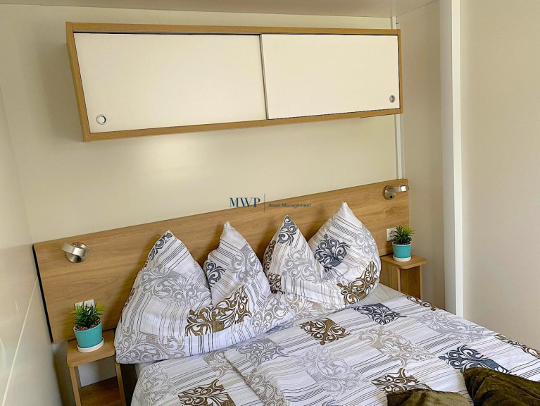 Zum Verkauf steht ein Neubau-Mobilhaus in begehrter Lage im Storchencamp in Rust am Neusiedlersee (Ruster Bucht). Das besondere Highlight: eine Gartenparzelle in Miete mit rund 89 m², die Platz und Privatsphäre bietet.