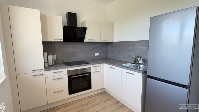 Die Küche wurde im Zuge der Sanierung vollständig neu eingebaut und überzeugt durch ihr klares, modernes Design.