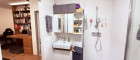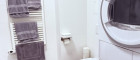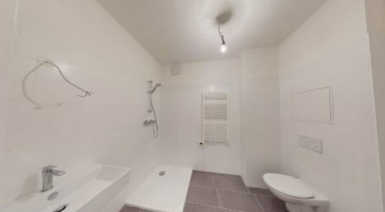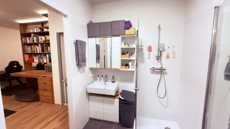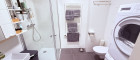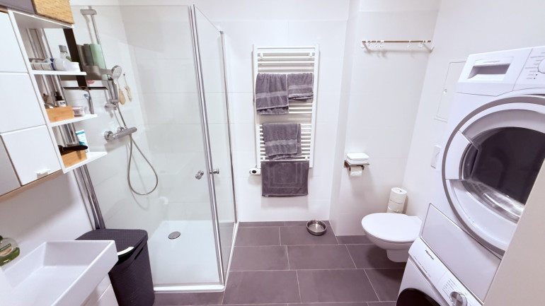 Badezimmer mit Dusche, WC und Waschmaschinenanschluss