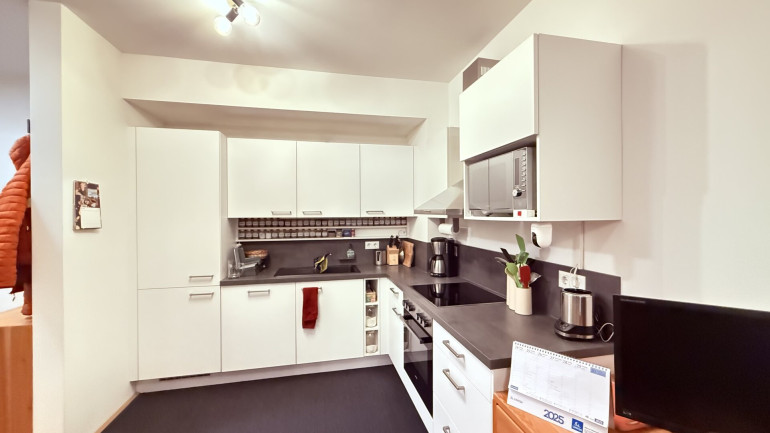 Neuwertiger Zustand: Komplett ausgestattete Küche, moderne Ausstattung, hochwertige Parkettböden