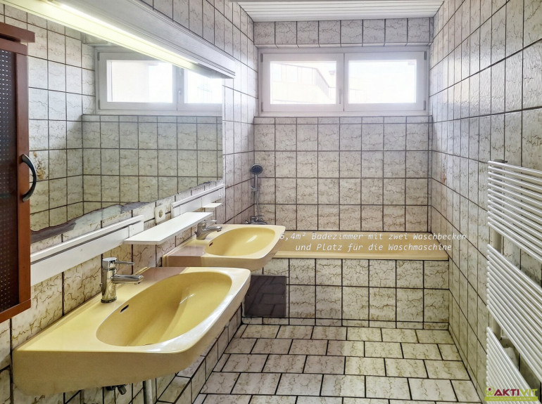 Fliesen, Parkett, Zentralheizung, Einbauküche, Personenaufzug, Bad mit Fenster, Badewanne, Dusche, Garage