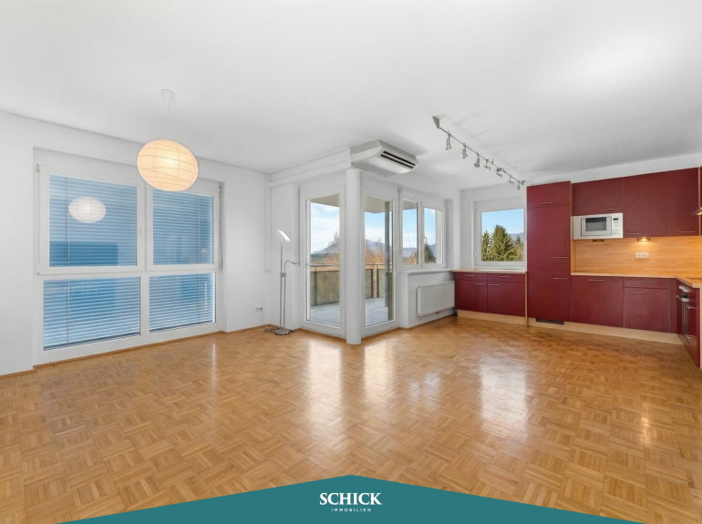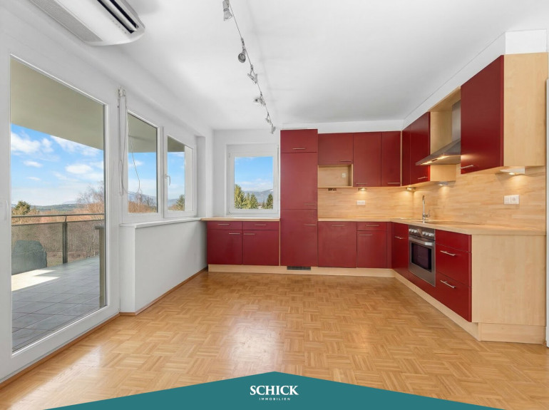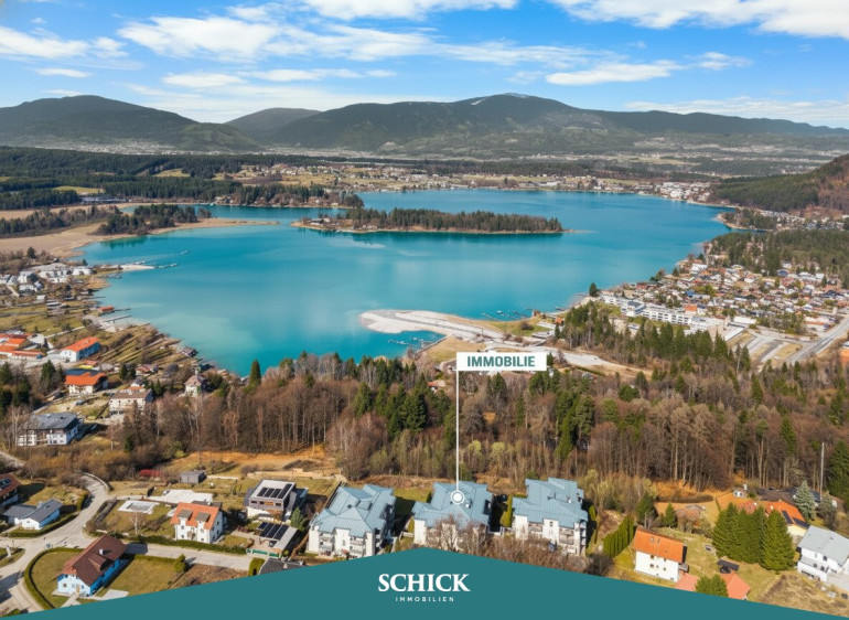 Diese rund 80 m² große 3-Zimmer-Wohnung im 1. Obergeschoss überzeugt mit durchdachter Raumaufteilung und einem Wohngefühl, das sofort anspricht. Der helle, offen gestaltete Wohn-Essbereich mit moderner Einbauküche bildet das Zentrum und bietet direkten Zugang zum großzügigen Balkon mit Blick auf den Faaker See – ebenso genießt man diesen Ausblick bereits vom Küchenfenster.