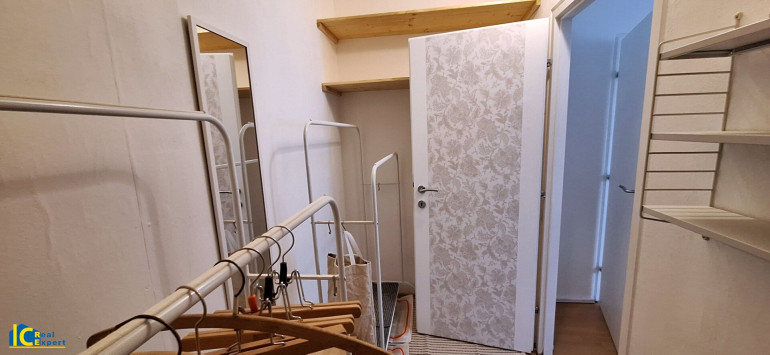 Badezimmer und WC sind getrennt zu begehen, vom Vorraum aus ist ein weiterer Abstellraum, der derzeit als begehbare Garderobe möbliert ist vorhanden.