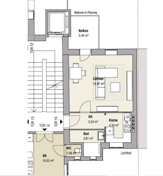 der Balkon ist bereits bewilligt und wird auf Kosten des Käufers angebaut